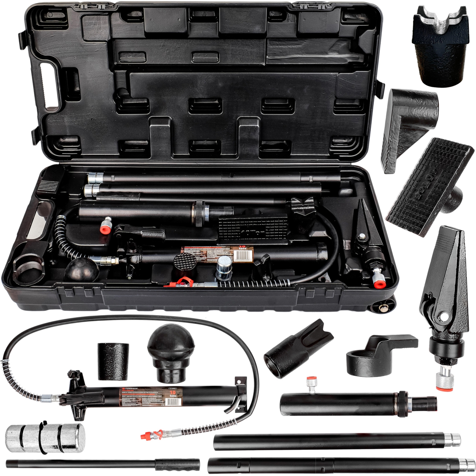 Rozpierak hydrauliczny 10T to kompletny zestaw do prostowania i naprawy elementów karoserii. Dzięki dużej sile, szerokiemu zestawowi akcesoriów i solidnej konstrukcji, jest to narzędzie, które poradzi sobie nawet z najbardziej wymagającymi zadaniami.