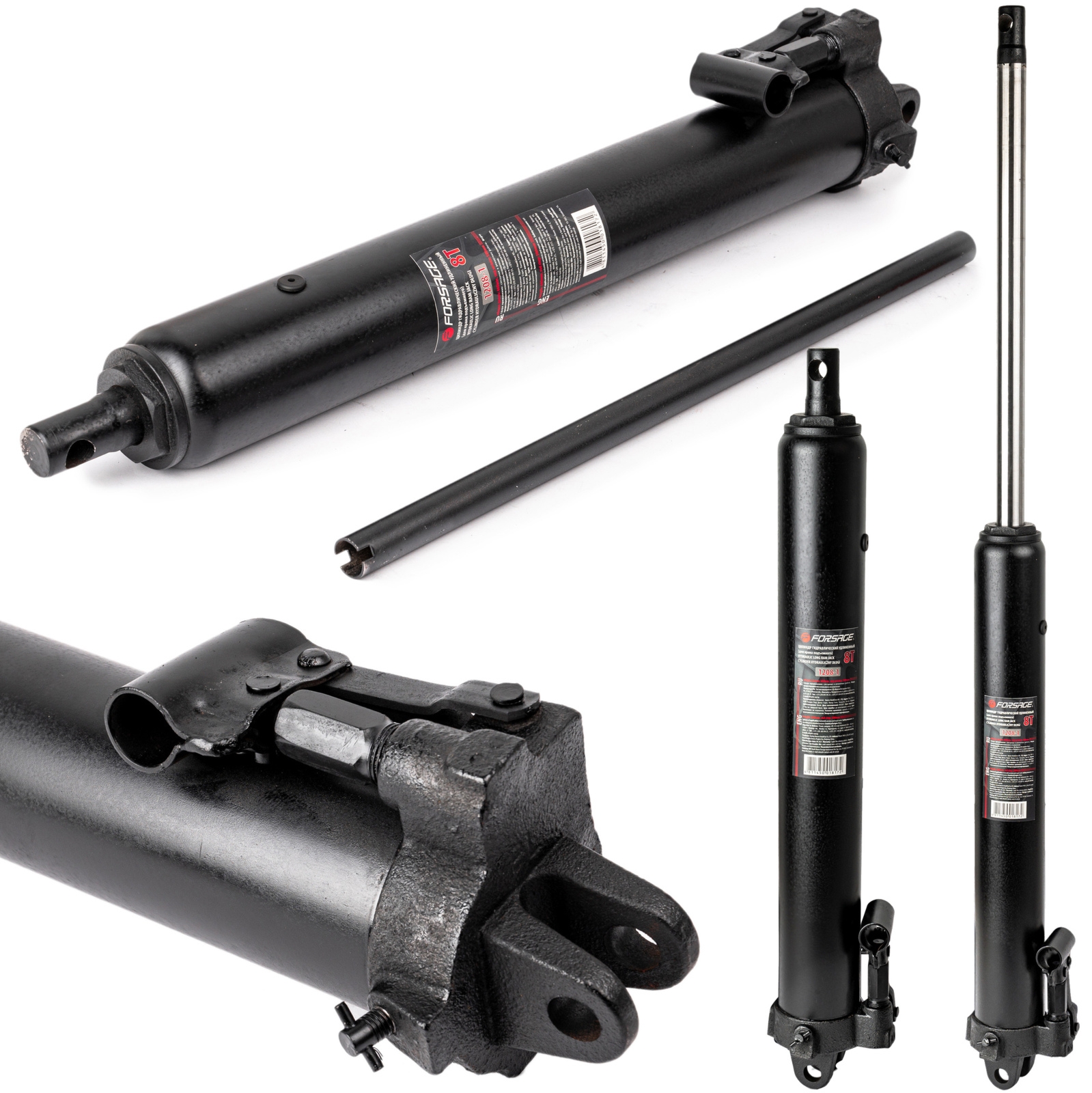 Zestaw zawiera pompę hydrauliczną, cylindry, przedłużacze i zakrzywione nasadki. Można go również uzupełnić o cylinder hydrauliczny o odwróconym działaniu oraz nasadkami mocującymi.